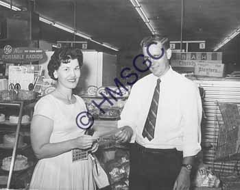 Accession Number:2001-51.389 Accession Date: Condition:good Location:Ward, box 6, folder 59 Keywords:1960, Ward, Chancellor, KTTS, television, radio, couple, check Area of Origin:Springfield, MO Period:ca. 1960 Category:documentary artifact Object:print, photographic Maker:uk Description/History:A black and white photo of a couple holding a check with a store in the background. News-Leader Photo Information: