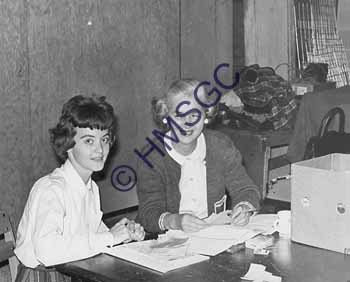 Accession Number:2001-51.392 Accession Date: Condition:good Location:Ward, box 6, folder 62 Keywords:1960, Ward, Chancellor, KTTS, television, radio, women Area of Origin:Springfield, MO Period:ca. 1960 Category:documentary artifact Object:print, photographic Maker:uk Description/History:A black and white photo of two women sitting at a table. News-Leader Photo Information: