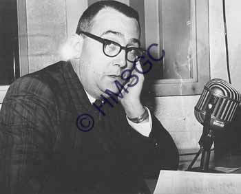 Accession Number:2001-51.407 Accession Date: Condition:good Location:Ward, box 6, folder 77 Keywords:Ward, Chancellor, KTTS, television, radio, men, glasses, 1960 Area of Origin:Springfield, MO Period:ca. 1965 Category:documentary artifact Object:print, photographic Maker:uk Description/History:A black and white photo of a man wearing glasses with head resting in his palm. He sits next to a microphone. News-Leader Photo Information: