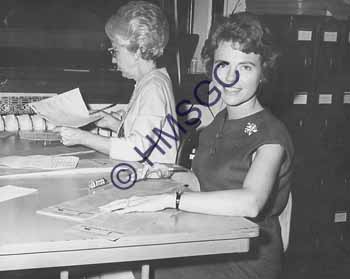 Accession Number:2001-51.409 Accession Date: Condition:good Location:Ward, box 6, folder 79 Keywords:Ward, Chancellor, KTTS, television, radio, women, 1960 Area of Origin:Springfield, MO Period:ca. 1965 Category:documentary artifact Object:print, photographic Maker:uk Description/History:A black and white photo of two women working next to eachother at a table. News-Leader Photo Information: