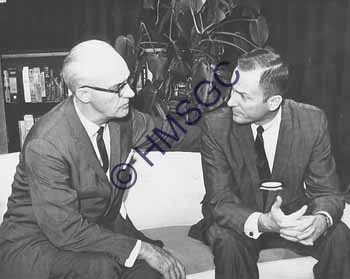 Accession Number:2001-51.410 Accession Date: Condition:good Location:Ward, box 6, folder 80 Keywords:Ward, Chancellor, KTTS, television, radio, men, interview Area of Origin:Springfield, MO Period:ca. 1965 Category:documentary artifact Object:print, photographic Maker:uk Description/History:A black and white photo of two men sitting side by side conversing. News-Leader Photo Information: