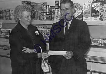 Accession Number:2001-51.424 Accession Date: Condition:good Location:Ward, box 6, folder 94 Keywords:Ward, Chancellor, KTTS, television, radio, couple, check, store Area of Origin:Springfield, MO Period:ca. 1965 Category:documentary artifact Object:print, photographic Maker:uk Description/History:A black and white photo of a man and woman holding a check in a store. News-Leader Photo Information:
