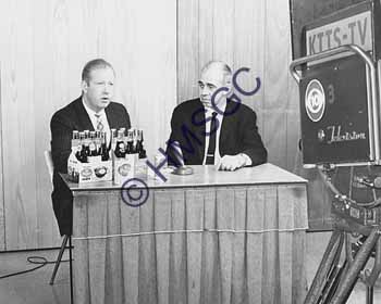 Accession Number:2001-51.44 Accession Date: Condition:good Location:Ward, box 3, folder 34 Keywords:Ward, KTTS, radio, television, Chancellor, men, Hasty, camera Area of Origin:Springfield, MO Period:ca. 1960 Category:documentary artifact Object:print, photographic Maker:uk Description/History:A black and white photo of annoucer Raph Hasty and guest in front of KTTS camera. News-Leader Photo Information:
