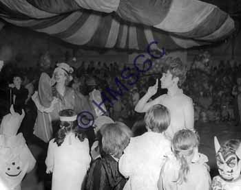 Accession Number:2001-51.452 Accession Date: Condition:good Location:Ward, box 7, folder 12 Keywords:Ward, Chancellor, KTTS, 1960, television, radio, circus, children, costumes Area of Origin:Springfield, MO Period:ca. 1965 Category:documentary artifact Object:print, photographic Maker:uk Description/History:A black and white photo of a large crowd wearing costumes in a circus setting. News-Leader Photo Information: