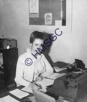 Accession Number:2001-51.461 Accession Date: Condition:good Location:Ward, box 7, folder 21 Keywords:Ward, Chancellor, KTTS, television, radio, women, typewriter Area of Origin:Springfield, MO Period:ca. 1965 Category:documentary artifact Object:print, photographic Maker:uk Description/History:A black and white photo of a young woman writing near a typewriter. News-Leader Photo Information: