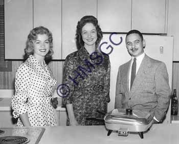 Accession Number:2001-51.474 Accession Date: Condition:good Location:Ward, box 7, folder 34 Keywords:Ward, Chancellor, KTTS, television, radio, women, men, 1960, kitchen, Haden Area of Origin:Springfield, MO Period:ca. 1965 Category:documentary artifact Object:print, photographic Maker:Haden Description/History:A black and white photo of two young women and on e man standing in a kitchen. News-Leader Photo Information: