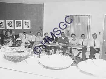 Accession Number:2001-51.494 Accession Date: Condition:good Location:Ward, box 7, folder 54 Keywords:Ward, Chancellor, KTTS, television, radio, people, meeting Area of Origin:Springfield, MO Period:ca. 1965 Category:documentary artifact Object:print, photographic Maker:uk Description/History:A black and white photo of a group meeting. Food rests in the foreground. News-Leader Photo Information: