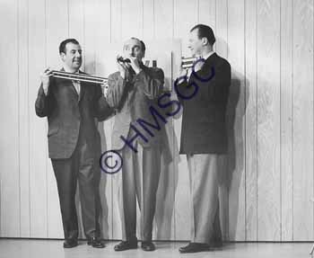 Accession Number:2001-51.497 Accession Date: Condition:good Location:Ward, box 7, folder 57 Keywords:Ward, Chancellor, 1960, television, radio, KTTS, men, music, musicians Area of Origin:Springfield, MO Period:ca. 1965 Category:documentary artifact Object:print, photographic Maker:uk Description/History:A black and white photo of three men playing unusual instruments. News-Leader Photo Information: