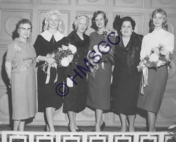 Accession Number:2001-51.50 Accession Date: Condition:good Location:Ward, box 3, folder 39 Keywords:Ward, KTTS, radio, television, Chancellor, women, fashion Area of Origin:Springfield, MO Period:ca. 1960 Category:documentary artifact Object:print, photographic Maker:Haden Photos Description/History:A black and white photo of a group of six women standing and holding flowers. News-Leader Photo Information: