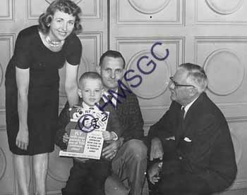 |  Accession Number:2001-51.532  Accession Date:  Condition:good  Location:Ward, box 7, folder 92  Keywords:Ward, Chancellor, 1960, television, radio, KTTS, family, Yogi's Jellybean Sweepstakes, prize, winner, children, boy  Area of Origin:Springfield, MO  Period:ca. 1965  Category:documentary artifact  Object:print, photographic  Maker:uk  Description/History:A black and white photo of parents with their son who won Yogi's Jellybean Sweepstakes.  See 2001-51.430.  News-Leader Photo Information: |