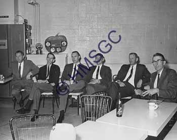 Accession Number:2001-51.543 Accession Date: Condition:good Location:Ward, box 7, folder 103 Keywords:Ward, Chancellor, 1960, KTTS, television, radio, men Area of Origin:Springfield, MO Period:ca. 1965 Category:documentary artifact Object:print, photographic Maker:uk Description/History:A black and white photo of six men seated. News-Leader Photo Information: