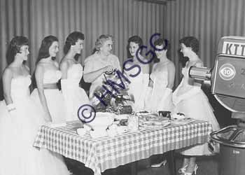 | Accession Number:2001-51.571 Accession Date: Condition:good Location:Ward, box 8, folder 21 Keywords:Ward, Chancellor, KTTS, television, radio, women, fashion, hats, Haden, Rose, Moennighoff Area of Origin:Springfield, MO Period:ca. 1965 Category:documentary artifact Object:print, photographic Maker:Haden Description/History:A black and white photo of three women standing outside of the "French Room". They are fashionably dressed wearing hats and accessories. Two of the women are identified as Barbara Moennighoff and Madaline Rose. News-Leader Photo Information: |