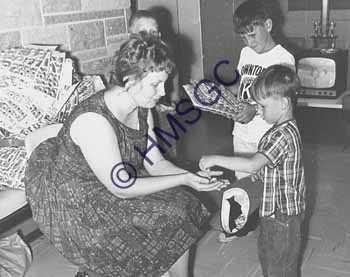 Accession Number:2001-51.592 Accession Date: Condition:good Location:Ward, box 8, folder 42 Keywords:Ward, Chancellor, KTTS, television, radio, women, children, bottle caps, boys Area of Origin:Springfield, MO Period:ca. 1965 Category:documentary artifact Object:print, photographic Maker:uk Description/History:A black and white photo of a woman collecting bottle caps from three small boys. News-Leader Photo Information: