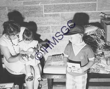 | Accession Number:2001-51.593 Accession Date: Condition:good Location:Ward, box 8, folder 43 Keywords:Ward, Chancellor, KTTS, television, radio, baseball, children, sports Area of Origin:Springfield, MO Period:ca. 1965 Category:documentary artifact Object:print, photographic Maker:uk Description/History:A black and white photo of a mother and her two children. The child on her lap looks at a baseball as the young boy (right) holds a baseball card and wears a Kansas City Royals hat. Stacks of bottle caps can be seen in the distance. News-Leader Photo Information: |