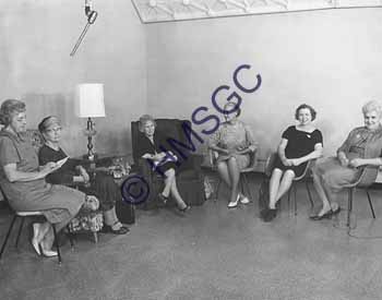 Accession Number:2001-51.599 Accession Date: Condition:good Location:Ward, box 8, folder 49 Keywords:Ward, Chancellor, KTTS, television, radio, women, 1960, fashion, Cox, College of Cooking Area of Origin:Springfield, MO Period:ca. 1965 Category:documentary artifact Object:print, photographic Maker:uk Description/History:A black and white photo of Mary E. Cox of College of Cooking and five seated women. News-Leader Photo Information: