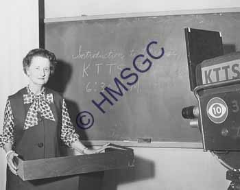 |  Accession Number:2001-51.600  Accession Date:  Condition:good  Location:Ward, box 8, folder 50  Keywords:Ward, Chancellor, KTTS, television, radio, women, literature, show, education, professor, college, camera, class  Area of Origin:Springfield, MO  Period:ca. 1965  Category:documentary artifact  Object:print, photographic  Maker:uk  Description/History:A black and white photo of a female professor standing at a podium in front of a KTTS camera.  The blackboard reads:  "Introduction to Literature".  News-Leader Photo Information: |