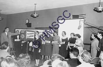 | Accession Number:2001-51.613 Accession Date: Condition:good Location:Ward, box 8, folder 63 Keywords:Ward, Chancellor, KTTS, television, radio, 1960, women, rehearsal, set, show, TV Classroom, education Area of Origin:Springfield, MO Period:ca. 1960 Category:documentary artifact Object:print, photographic Maker:uk Description/History:A black and white photo of a group of women labled with roles during a rehearsal on a KTTS set of TV classroom. News-Leader Photo Information: |