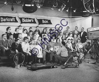 | Accession Number:2001-51.615 Accession Date: Condition:good Location:Ward, box 8, folder 65 Keywords:Ward, Chancellor, KTTS, television, radio, 1960, Daricraft Bidder's Box, crowd, children, show, camera, Haden Area of Origin:Springfield, MO Period:ca. 1960 Category:documentary artifact Object:print, photographic Maker:Haden Description/History:A black and white photo of a group of kids on bleachers in the Daricraft Bidder's Box. They are being filmed by a KTTS camera (right). News-Leader Photo Information: |