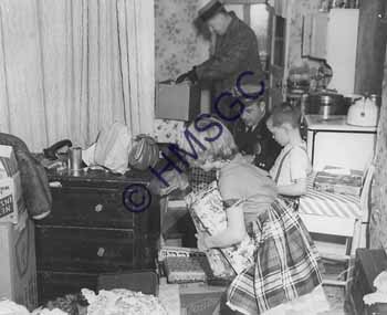 Accession Number:2001-51.621 Accession Date: Condition:good Location:Ward, box 8, folder 71 Keywords:Ward, Chancellor, KTTS, television, radio, 1960, gifts, children, police Area of Origin:Springfield, MO Period:ca. 1965 Category:documentary artifact Object:print, photographic Maker:uk Description/History:A black and white photo of two children a police officer and a detective searching a room for gifts. News-Leader Photo Information: