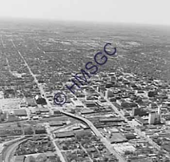 Accession Number:2001-51.65 Accession Date: Condition:good Location:Ward, box 3, folder 55 Keywords:Ward, KTTS, radio, television, Chancellor, aerial, Springfield Area of Origin:Springfield, MO Period:ca. 1960 Category:documentary artifact Object:print, photographic Maker:uk Description/History:A black and white photo of an aerial of Springfield. News-Leader Photo Information: