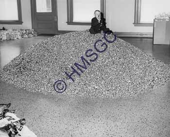 Accession Number:2001-51.660 Accession Date: Condition:good Location:Ward, box 8, folder 110 Keywords:Ward, Chancellor, KTTS, television, radio, 1960, boy, soda, bottle caps Area of Origin:Springfield, MO Period:ca. 1965 Category:documentary artifact Object:print, photographic Maker:uk Description/History:A black and white photo of a small boy sitting atop a pile of bottle caps drinking a soda. News-Leader Photo Information: