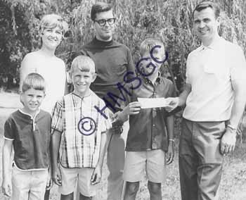 | Accession Number:2001-51.673 Accession Date: Condition:good Location:Ward, box 8, folder 123 Keywords:Ward, Chancellor, 1960, KTTS, television, radio, family, winner, prize, fishing, Sweaney Area of Origin:Springfield, MO Period:ca. 1965 Category:documentary artifact Object:print, photographic Maker:uk Description/History:A black and white photo of parents and their three boys celebrating the prize won by the oldest boy at the KTTS Fish for Money contest. Jerry Sweaney stands right. News-Leader Photo Information: |