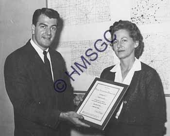 Accession Number:2001-51.97 Accession Date: Condition:good Location:Ward, box 3, folder 87 Keywords:Ward, Chancellor, KTTS, television, radio, Ryan, Stinger, award Area of Origin:Springfield, MO Period:ca. 1960 Category:documentary artifact Object:print, photographic Maker:uk Description/History:A black and white photo of Clint Ryan and Maxine Stinger. News-Leader Photo Information: