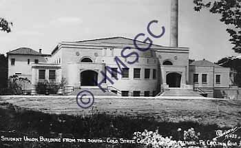 Accession Number:2002-331 Accession Date: Condition:fair Location:postcard, box 1, folder 132 Keywords:postcard, stamp Area of Origin:Ft. Collins, CO Period:8/13/1945 Category:documentary artifact Object:postcard Maker:Sanborn Description/History:A postcard of Student Union Bldg. From the south, Colorado State College of Agriculture, Ft. Collins, CO. News-Leader Photo Information: