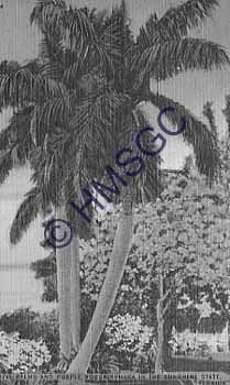 Accession Number:2002-352 Accession Date: Condition:fair Location:postcard, box 1, folder 153 Keywords:postcard, Claerwater, Morgan, palm tree Area of Origin:Clearwater, FLA Period:1945 Category:documentary artifact Object:postcard Maker:The Hartman Card Co. Description/History:A postcard of Royal Palms and Purple Bougainvillea in the Sunshine State, Florida. Addressed to Harry Morgan. News-Leader Photo Information:
