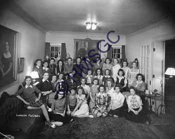 | Accession Number:2002-80 Accession Date: Condition:fair Location:women, box 3, folder 37 Keywords:Lambda Alpha Lambda, pledges, high school, sororities, fashion, home, interior, George, girls Area of Origin:Springfield, MO Period:1941 Category:documentary artifact Object:print, photographic Maker: Description/History:Photo of Lambda Alpha Lambda sorority pledges taken at the home of Mr. and Mrs. Walter N (Pinky) George, 714 S. Florence. Thirty-one junior high school girls are in the c. 1941 picture. Most are identified on back. News-Leader Photo Information: |