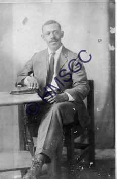 Accession Number:2006-137-20 Accession Date: Condition:good Location:Black History, B8, F20 Keywords:Man, Suit, Photograph, Post, Card, Sepia, Toned Area of Origin:Uk Period:Ca 1920 Category:Documentary Artifact, Photograph, Post Card Object:Photograph Post Card Maker:Uk Description/History:A sepia toned photograph post card of a man wearing a suit with a mustache sitting at a table. His left hand rests on a bible. News-Leader Photo Information: