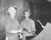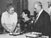 | 2001-51.442 | | A black and white photo of Mary E. Cox standing at a podium next to a surprized woman. |