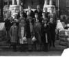 | 2000-206-75 | | Black aand white photo of a group of 18 boys and girls standing on the front steps of Springfield High School at Central St.and Jefferson Ave.. Names written on the back are difficult to read. |