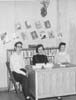 | 1992-232.1900 | | A black and white mounted photo of a male and two female Central High School students seated at a desk( behind them is a bookshelf and several books attached to the wall). |