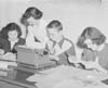 | 1992-232.1904 | | A black and white photo of a male using a typewriter and three female students surrounding him working on a journalism project at Central High School. |