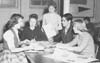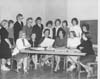 | 1992-232.1908 | | A black and white photo of the journalism teacher at Central High School, seated at a table surrouned by 10 female students and three male students along with two other women. |