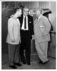 | 2000-206-37 | | Black and white photo of Bob Barker interviewing a young woman at the Gillioz theatre. KTTS technician Homer Hubbell is knelling and adjusting a wire recorder. |