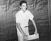 | 2001-51.289 | | A black and white photo of a young man standing behind a chair. |