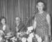 | 2001-51.393 | | A black and white photo of a woman speaking with a hat. |