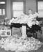 | 2001-51.669 | | A black and white photo of a man behind a desk piled high with papers. |