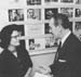 | 2001-51.609 | | A black and white photo of a man conversing with a woman in front of a TV schedule board. |