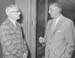 | 2001-51.656 | | A black and white photo of two men wearing suits and conversing. |