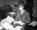 | 2001-51.135 | | A photo of a woman sitting behind a desk, holding a piece of paper. |