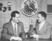 | 2001-51.581 | | A black and white photo of two men at CH 10 FYI exchanging a trophy. |