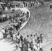 | 2001-51.670 | | A black and white photo of a crowd of people along a sidewalk. |