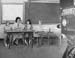 | 2001-51.216 | | A black and white photo of female teacher/interviewer and two female students sitting at table and being filmed. |