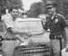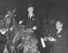 | 2001-51.394 | | A black and white photo of a man riding a horse with flower wreath. Another man (right) presents an award to the rider. |
