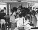 | 2001-51.594 | | A black and white photo of children reading in the foreground as people mill around in the background. A woman in curlers (center) looks down at a young boy. |