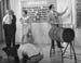 | 2001-51.557 | | A black and white photo of people on a set in front of a list of sponsors. |