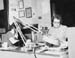 | 2001-51.416 | | A black and white photo of two women working at a desk. The woman (left) talks on the phone, while the woman (right) reads. |
